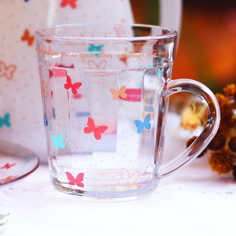 A Xícara de Vidro Borboleta 270 ml vai ficar linda na sua cozinha, sala de jantar, copa, cantinho do café e em qualquer outro ambiente da sua casa.